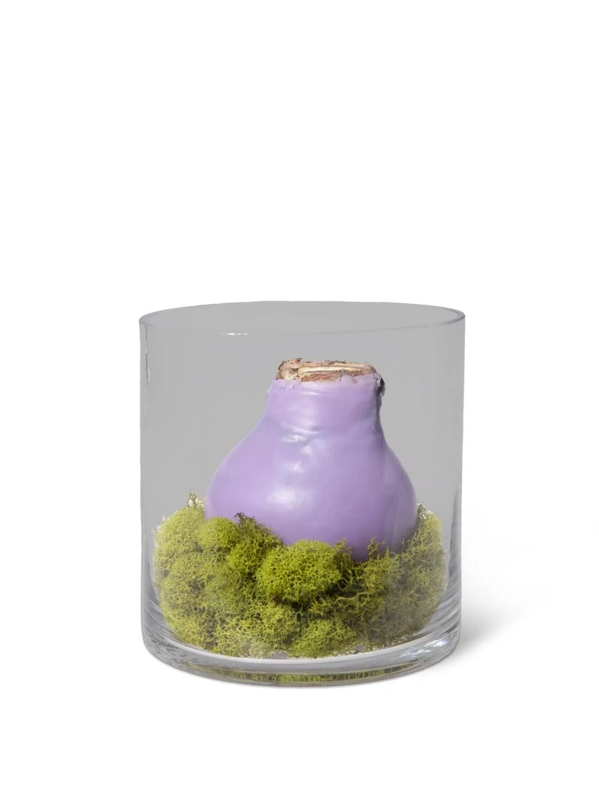 • Waxed amaryllis bulb, reindeer moss, cachepot