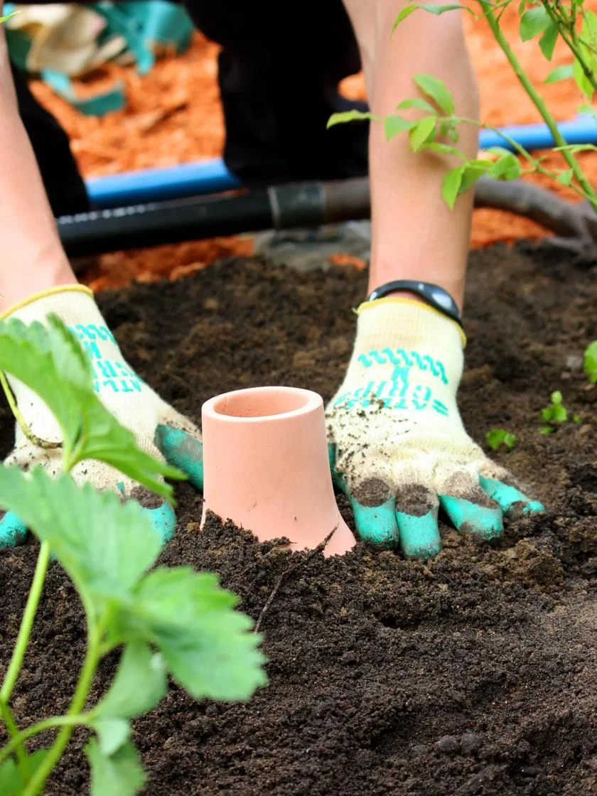 Take the guesswork out of watering with this clever system. Simply bury the vessel up to its neck, fill with water, cover the top with the lid, and let it get to work. The terra cotta will slowly release water into the soil allowing plant roots to take up as much as they need when they need it. Plants get ample hydration and you don’t have to worry about overwatering or losing water to surface evaporation — especially in dry climates or during water shortages.